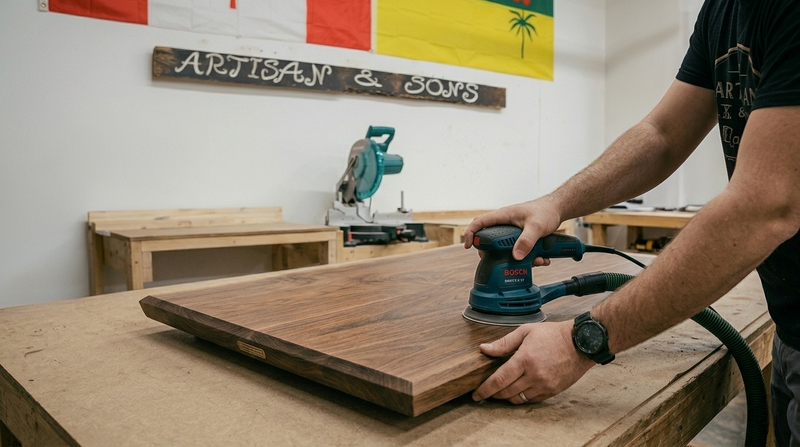 Hours of sanding and finishing bring out the wood's natural beauty — smooth to the touch, built to last.